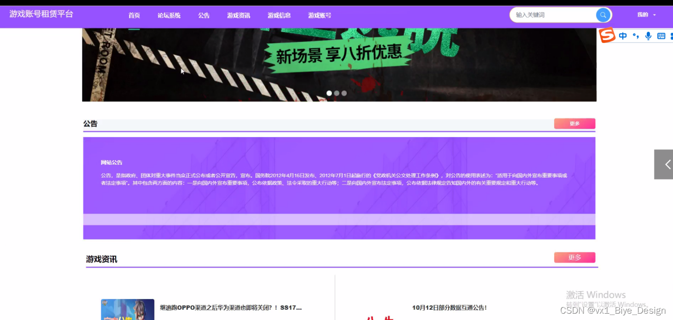 According to the research status and development trend of the game account rental platform, the system can be divided into front-end implementation and back-end implementation from demand analysis, structure design, database design to system implementation. The system strives to find a practical development plan based on the actual situation. After repeated research and learning, it uses Java programming language, JSP technology, MySQL database and Tomcat server to complete all the functions of the system, mainly according to user needs to complete the home page, broadcast map, bulletin board Resource management (game information, information classification) communication management (forum system, forum classification) system user (administrator, registered user, seller) module management (game classification, game information, game purchase, game account, user purchase number) and other functions, and finally conduct system testing to detect the system's permissions and vulnerabilities, so as to improve the system to meet the standards.