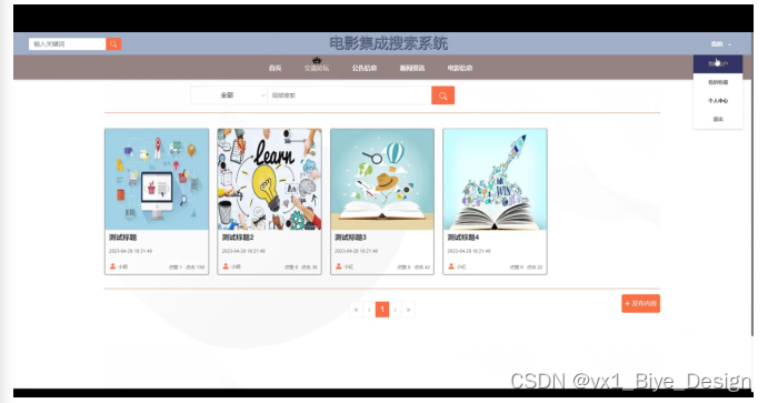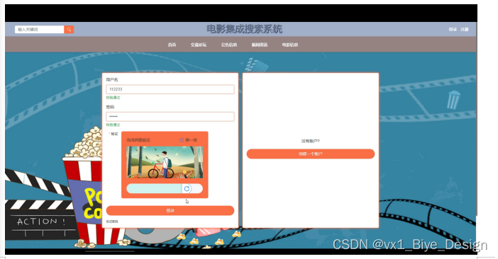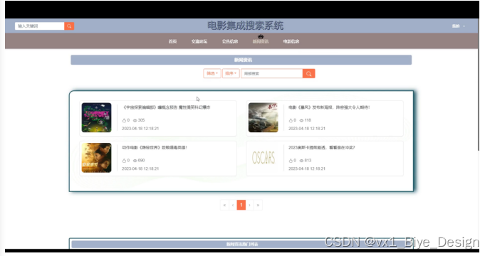 系统用户登录系统可以查看的功能模块有:首页,交流论坛,公告信息,新闻资讯,电影信息,我的账户,我的收藏,个人中心等,如下图所示。