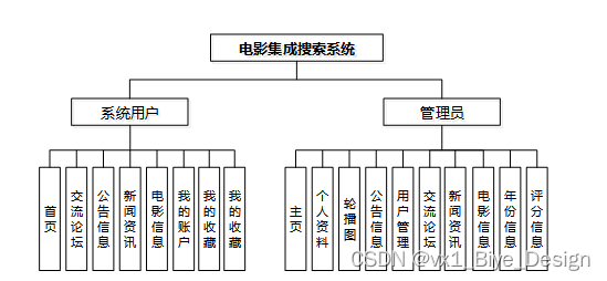 电影集成搜索系统主要是通过爬取网络上的电影相关数据,为电影信息,年份信息,评分信息的数据分析提供了方便的机制。本系统目前有两类使用者,一是系统用户,其次就是管理员。