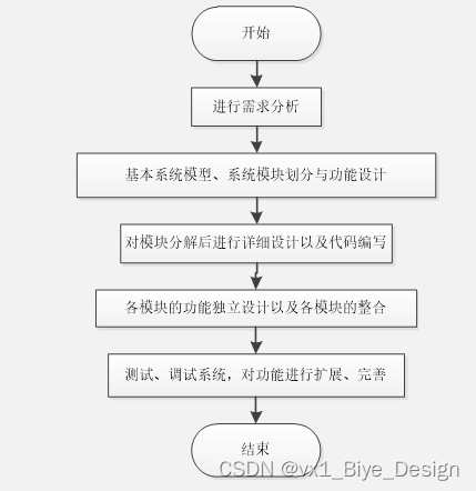 在开发设计家庭收纳管理系统app的时候,首先进行需求分析,进而对系统进行总体的设计规划,设计系统功能模块,测试等,家庭收纳管理系统app的设计流程图,如图4.3所示。
