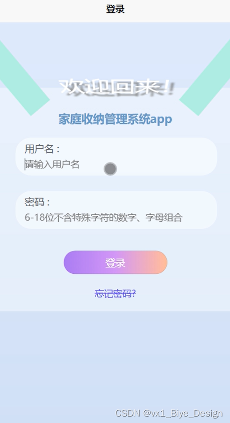 良好的安全性。要想对本家庭收纳管理系统app进行管理,首先要依靠用户名和密码在系统后台中登陆,无权限的用户不可以通过任何方式登录系统后台和对系统的任何信息和数据进行查看,这样可以保证系统的安全可靠性和准确性。在具体实现中对不同的权限进行设定,不同权限的用户在系统中登陆后,不可以越级操作。在实际使用的过程中系统都会涉及到很对需要进行保密的数据,系统出现一些漏洞将这些信息泄露出去将会对用户产生很大的损失,所以在开发系统时我们充分确保了本系统的安全性、可靠性、完整性。