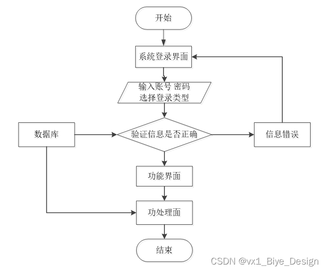管理员想进入系统,首先进入系统登录界面,通过正确的用户名、密码,选择登录类型登录,系统会检查登录信息,信息正确,然后输入相应的功能界面,提示信息错误,登录失败。系统操作流程如图3-3所示。