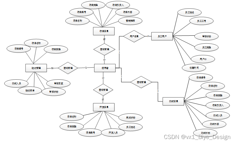 下面是整个项目信息管理系统中主要的数据库表总E-R实体关系图。