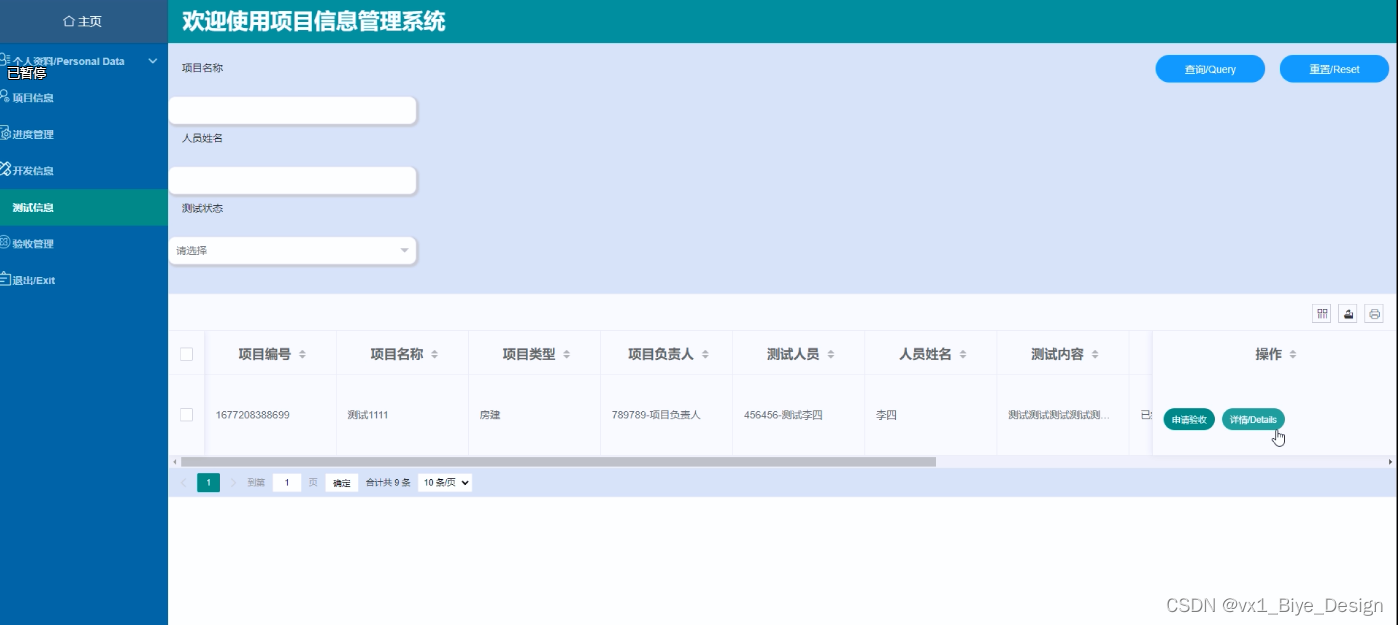 查询项目信息功能模块测试: