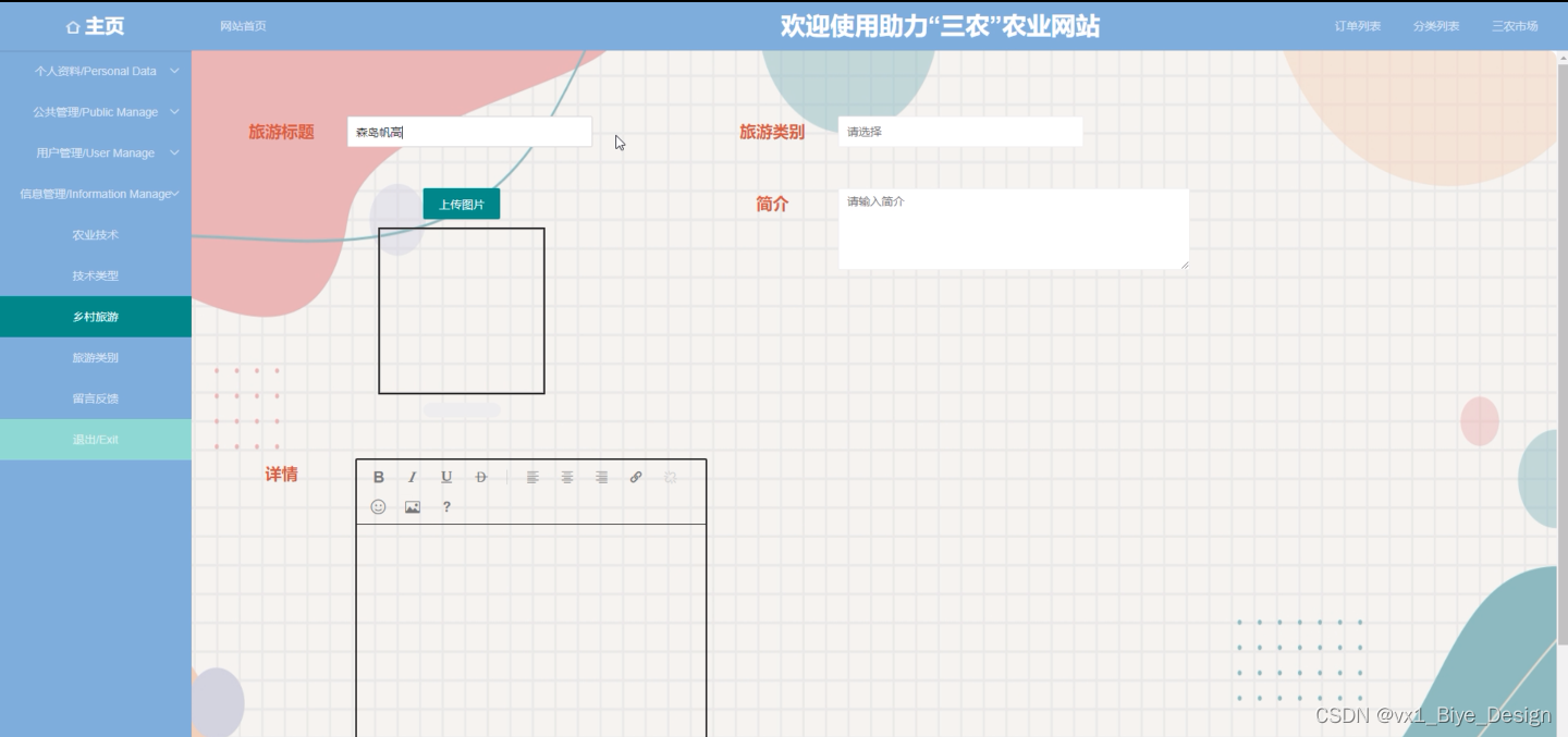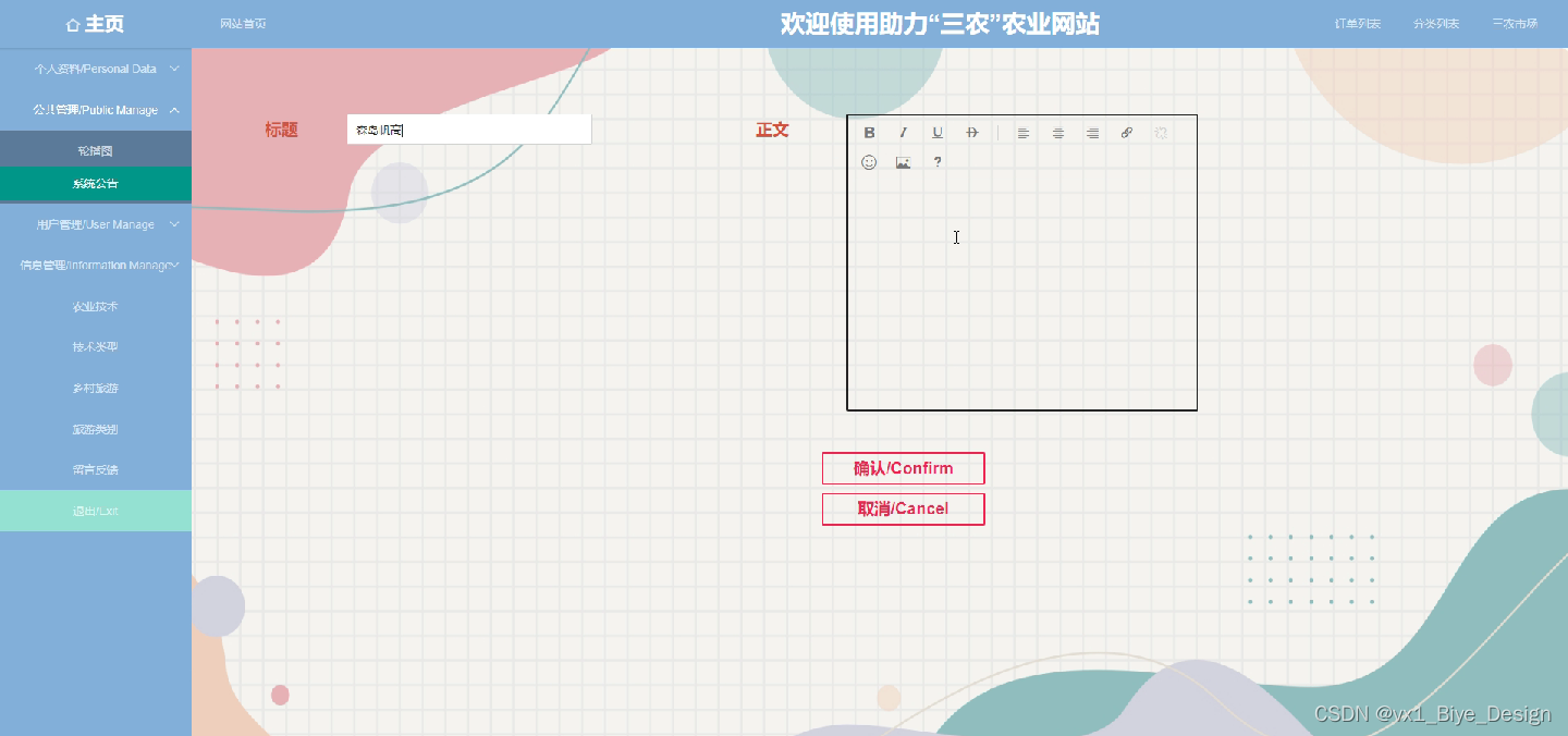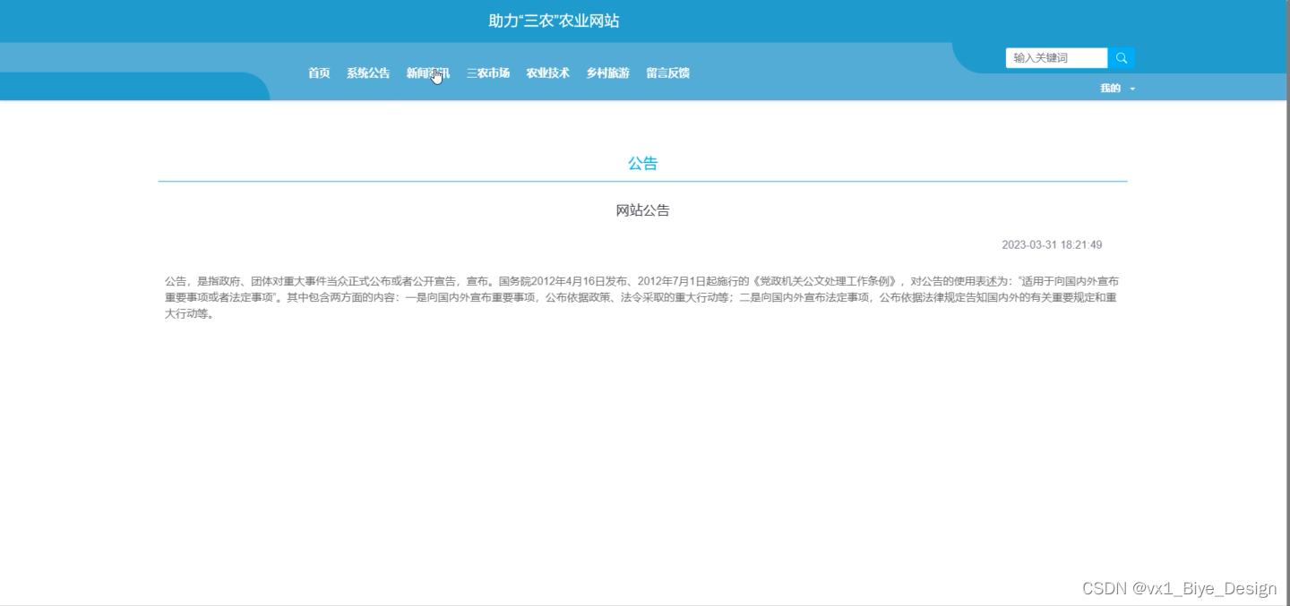 关键词:助力“三农”农业网站;SSM框架;MYSQL数据库;