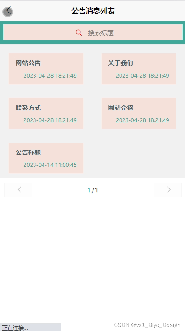 网站公告,在公告信息页面可以查看公告标题,简介,内容等信息,如图5-2所示。