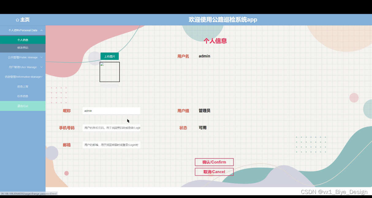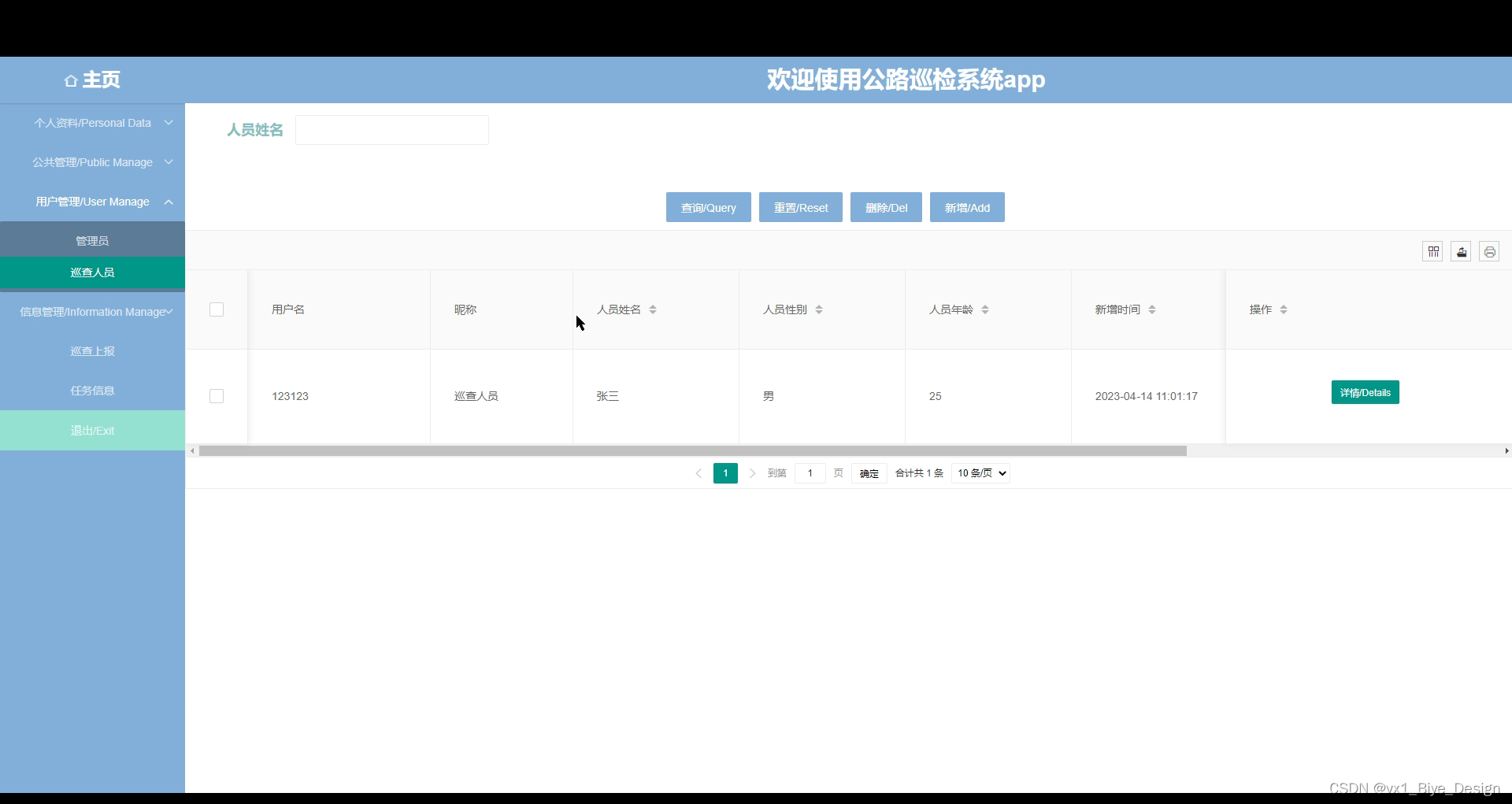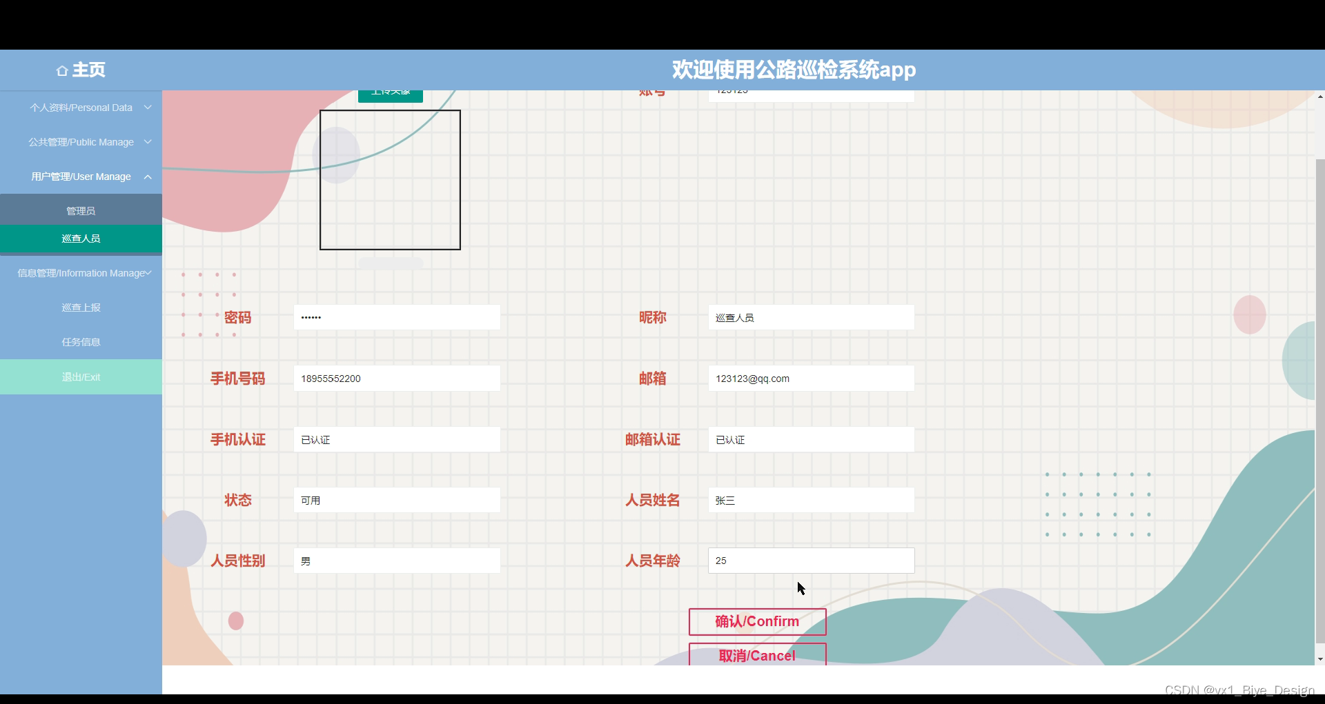 本文以后台管理端以Java为开发语言,Mysql数据库,用户前端采用Android技术,实现了一个公路巡检系统APP。公路巡检系统APP的主要使用者分为管理员和巡查人;实现主页,个人资料,公共管理(轮播图,公告信息),用户管理(管理员,巡查人),信息管理(公路资讯,资讯分类),巡查上报,任务信息等功能。通过这些功能模块的设计,基本上实现了整个公路巡检息管理的过程。