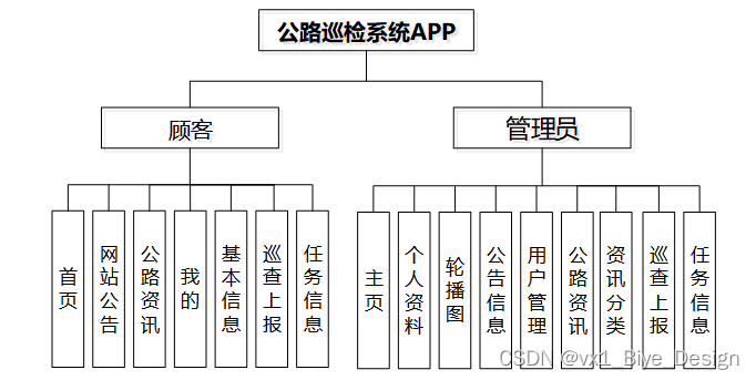 系统架构图属于系统设计阶段,系统架构图只是这个阶段一个产物,系统的总体架构决定了整个系统的模式,是系统的基础。公路巡检系统APP的整体结构设计如图4-2所示。
