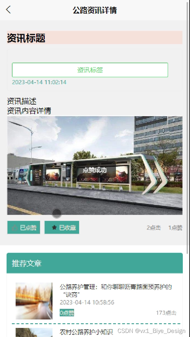 公路资讯,在公路资讯页面可以查看资讯标题,描述,内容强请等信息,如图5-3所示。