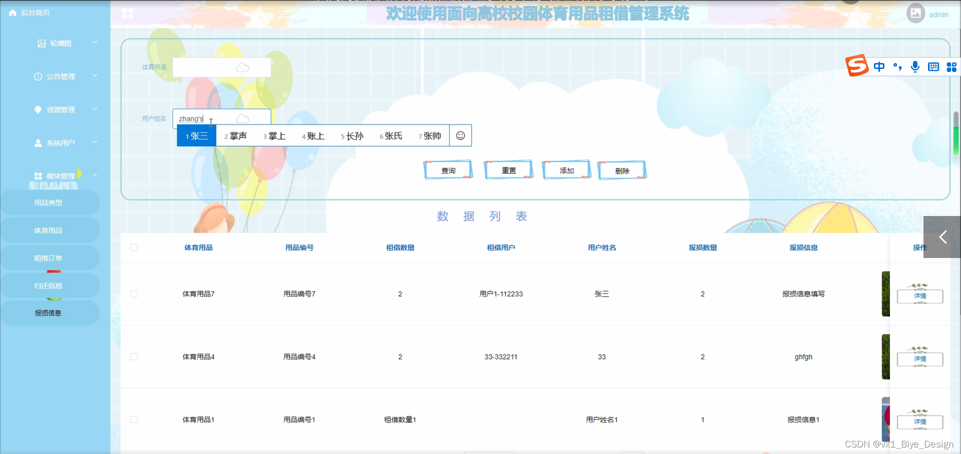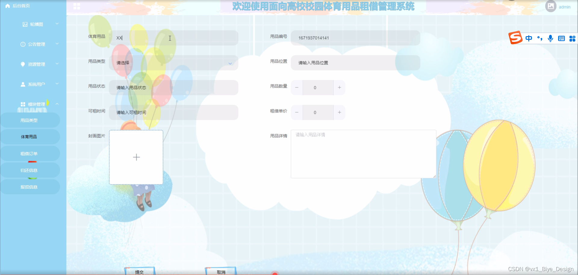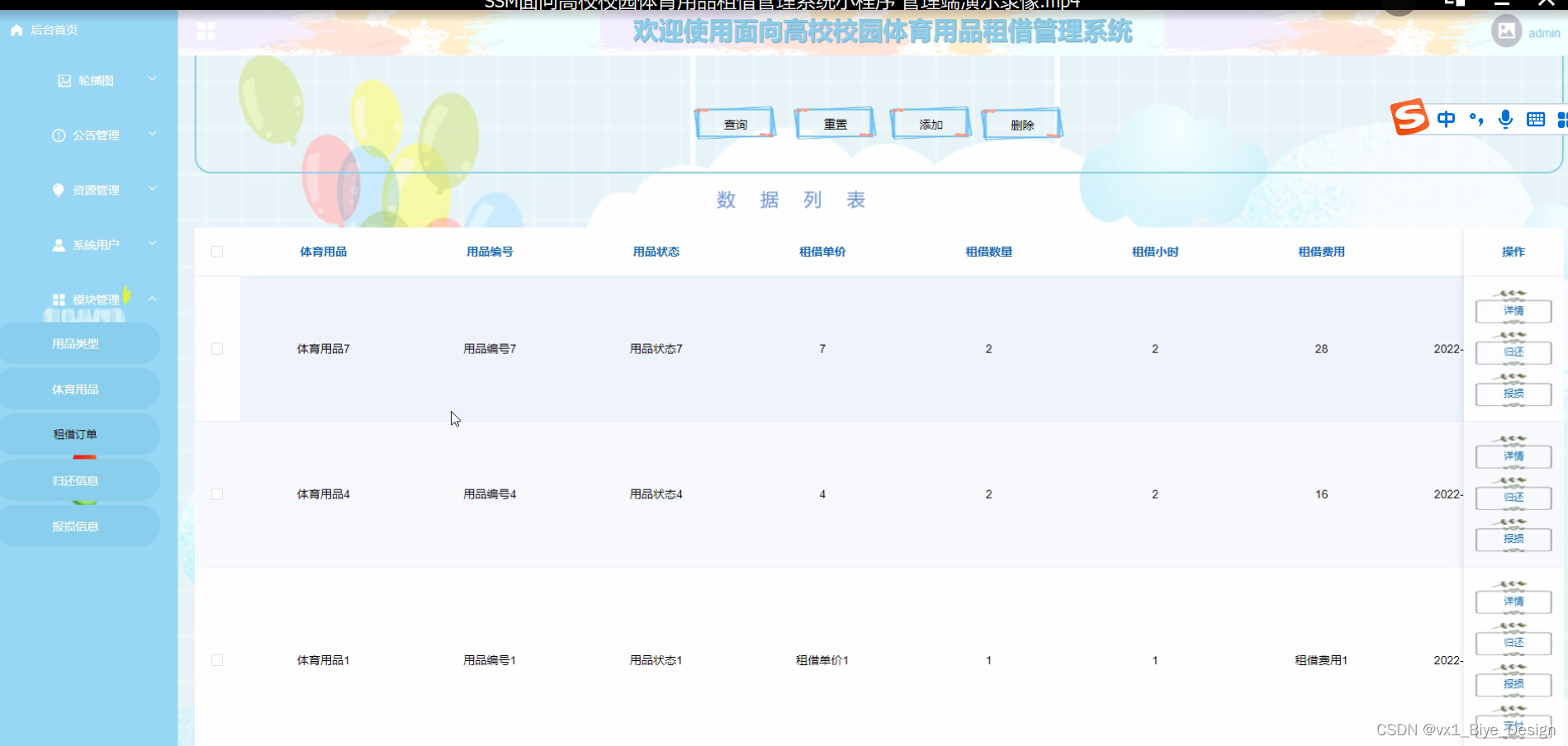 With the rapid development of China's economy, people's demand for mobile phones is increasing, and all kinds of mobile phone software are also widely used. However, for mobile phone data information management, various software for mobile phones are also popular with users. The management system of WeChat applets for college campus sports supplies rental is widely used by users, In order to facilitate users to manage the data and information of the university campus sporting goods rental management system based on the WeChat applet at any time, a management system for the university campus sporting goods rental management system based on the WeChat applet has been developed.