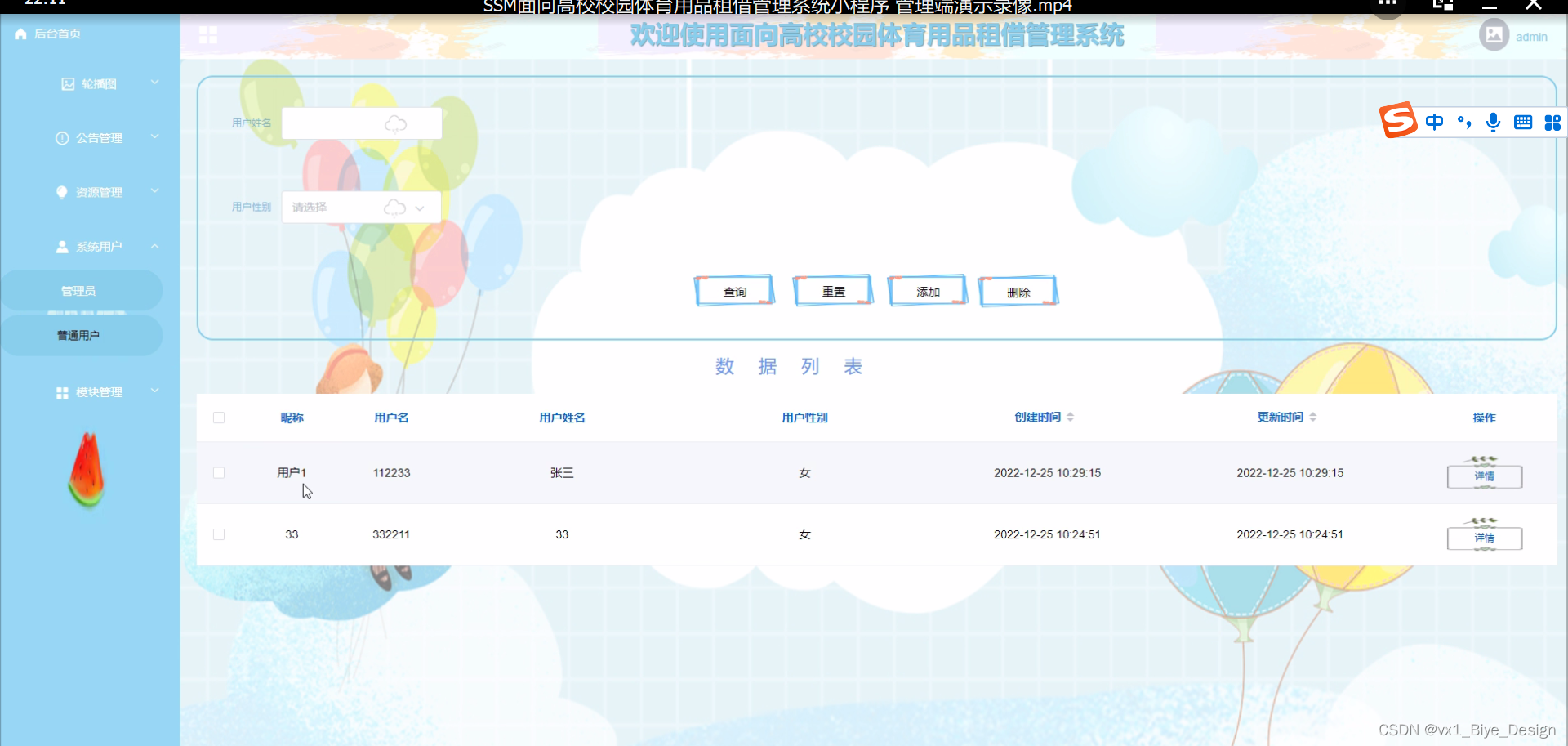本文详细介绍了基于微信小程序的高校校园体育用品租借管理系统的设计与实现,系统采用JAVA技术开发,结合Mysql数据库,利用SSM框架。系统包括用户和管理员功能模块,实现了数据信息管理,包括租借、归还和报损等流程。通过测试确保系统的功能性和稳定性,提高了校园体育用品管理的效率。