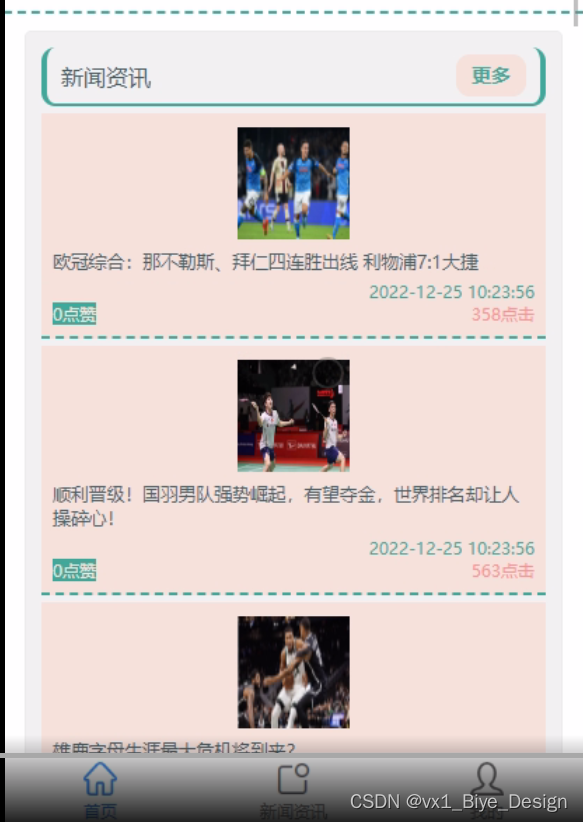 新闻资讯列表页面可以查看展示的资讯详情等信息,并可通过关键词搜索资讯,并对资讯点赞、评论、收藏等操作。如图5-4所示。