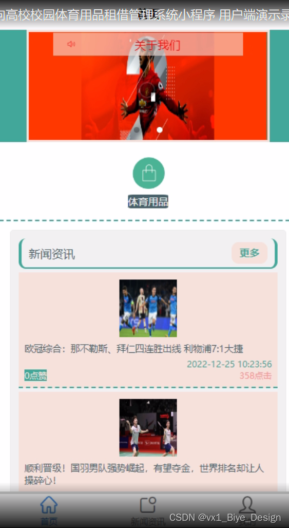 微信小程序的面向高校校园体育用品租借管理系统的开发利用现有的成熟技术参考,以源代码为模板,分析功能调整与微信小程序的面向高校校园体育用品租借管理系统管理的实际需求相结合,讨论了基于微信小程序的面向高校校园体育用品租借管理系统管理的使用。