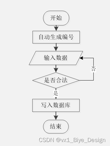 对于普洱学院新生入学服务平台小程序,需要随时添加所需要的数据信息,对于用户添加信息,需要根据添加界面,根据选框的内容进行填写所要添加的数据信息,信息输入完成后判断数据信息是否符合要求,符合要求则添加完成,用户所添加的信息不符合要求,则需要返回到第一步,重新输入数据信息,再进行判断操作,如图3-2所示。