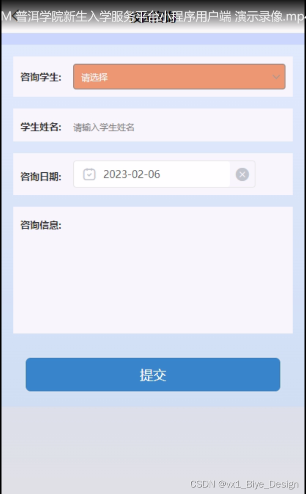 普洱学院新生入学服务平台小程序的系统项目的概述设计分析,主要内容有学习平台的具体分析,进行数据库的是设计,数据采用mysql数据库,并且对于系统的设计采用比较人性化的操作设计,对于系统出现的错误信息可以及时做出处理及反馈。