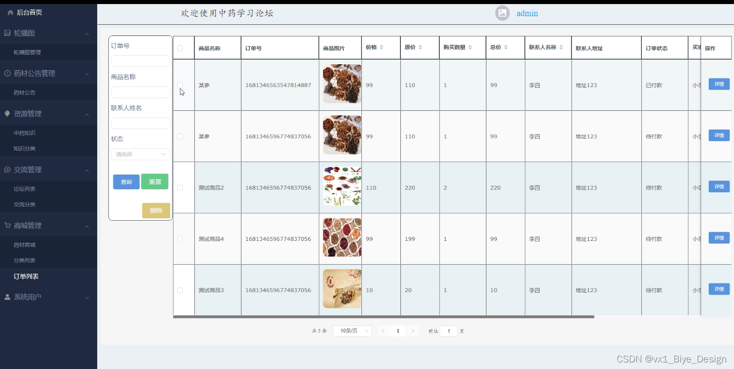 实用性方面,本次设计的主要任务是在中药学习论坛里实现:首页、轮播图、药材公告、资源管理(中药知识、知识分类)交流管理(论坛列表、交流分类)商城管理(药材商城、分类列表、订单列表)系统用户(管理员、系统用户)等功能模块,符合当前潮流的发展。从用户角度出发,同时也考虑系统运营成本和人力资源,采用网络上的便捷方式,实现线上业务,使得业务流程更系统,也更方便用户的体验,比较实用。