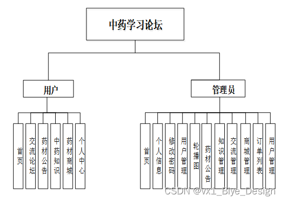 中药学习论坛总体分为前台用户模块和后台管理员模块。