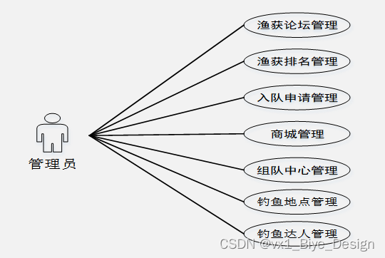 这些功能可以充分满足钓鱼分享平台的需求。此系统功能主要展示用户与管理员的功能结构,如图4-5所示。