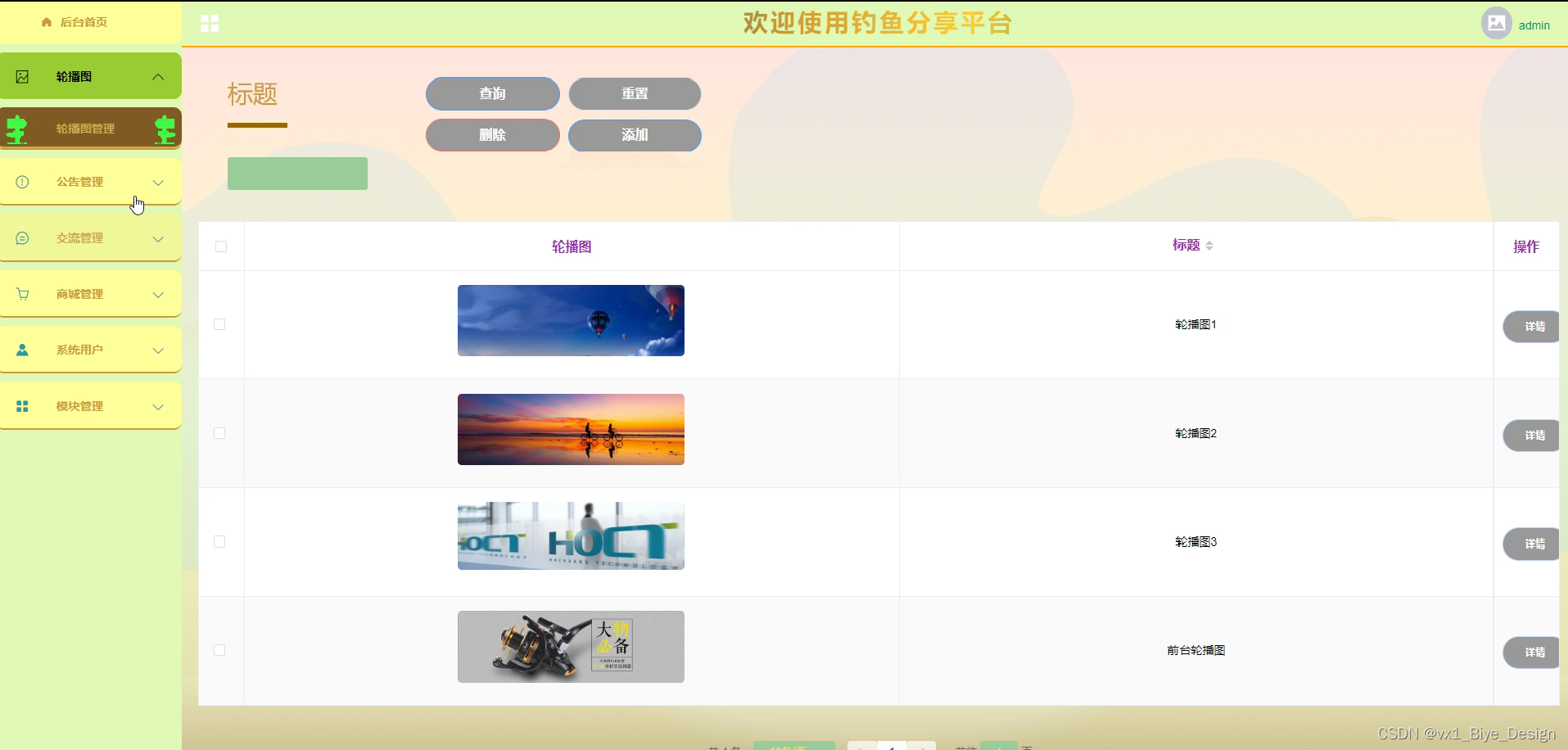 商城管理,在渔具商城信息列表页面可以进行渔具产品的修改或删除操作,如图5-9所示。