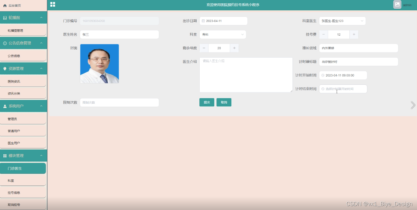 发布门诊医生,并可以销毁某个门诊医生,更新门诊医生数据,模糊搜索门诊医生数据等。