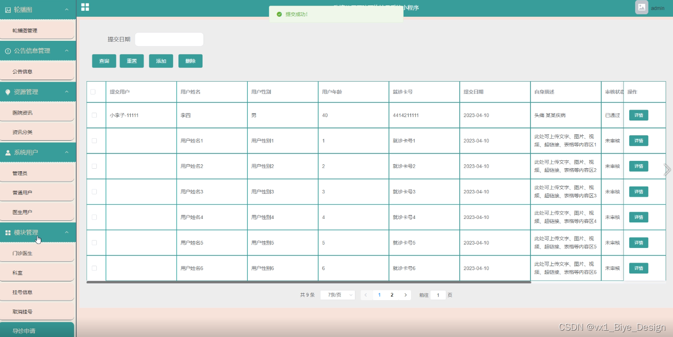 查看用户提交的取消挂号数据,管理员有权利维护它。