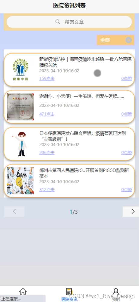 发布医院资讯,并可以销毁某个医院资讯,更新医院资讯数据,模糊搜索医院资讯数据等。