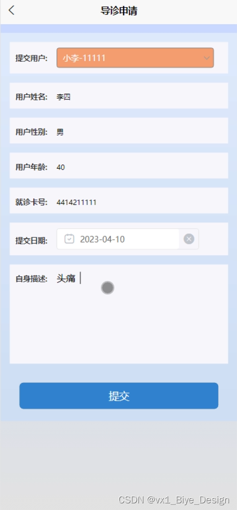 提交导诊申请,同时查看历史已提交的导诊申请记录。