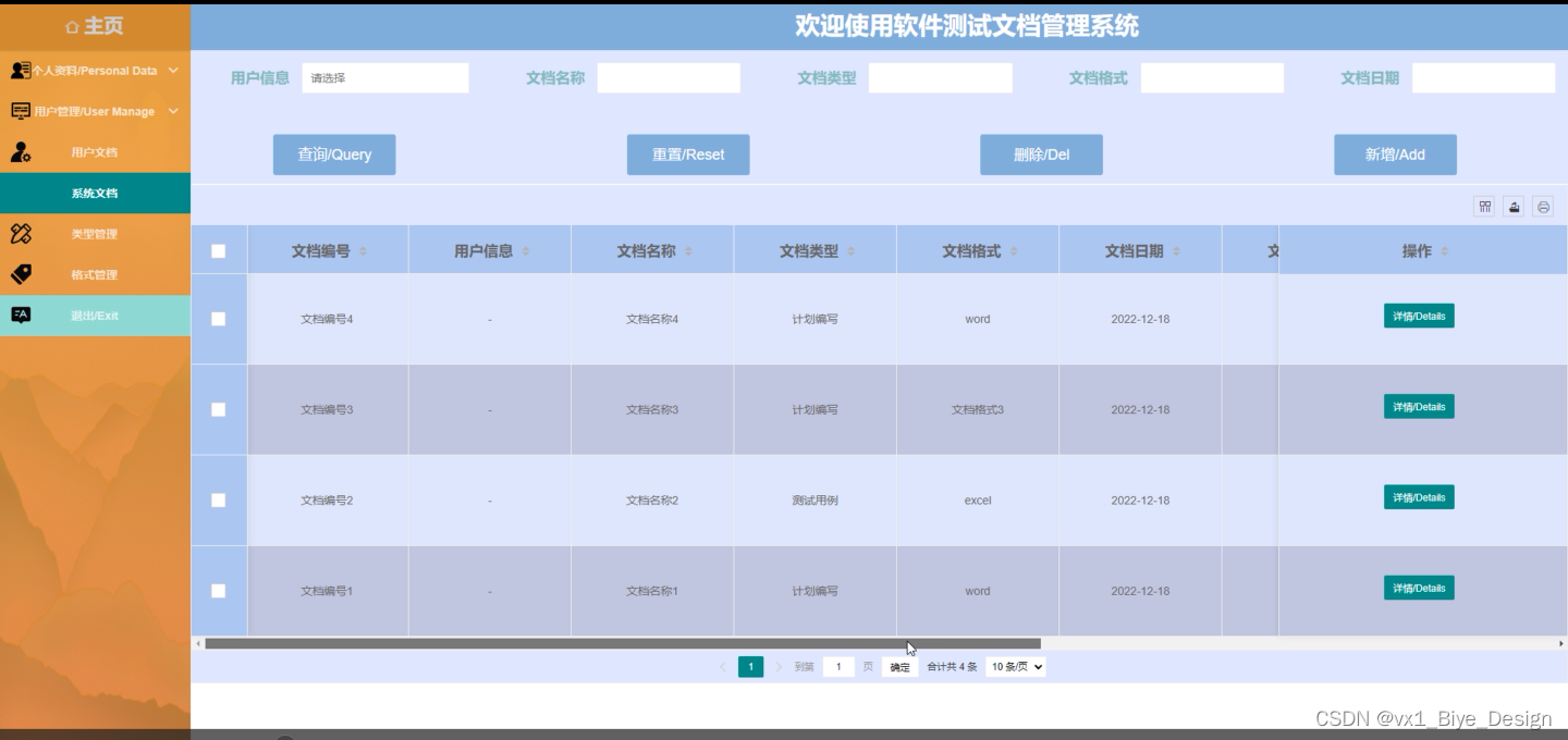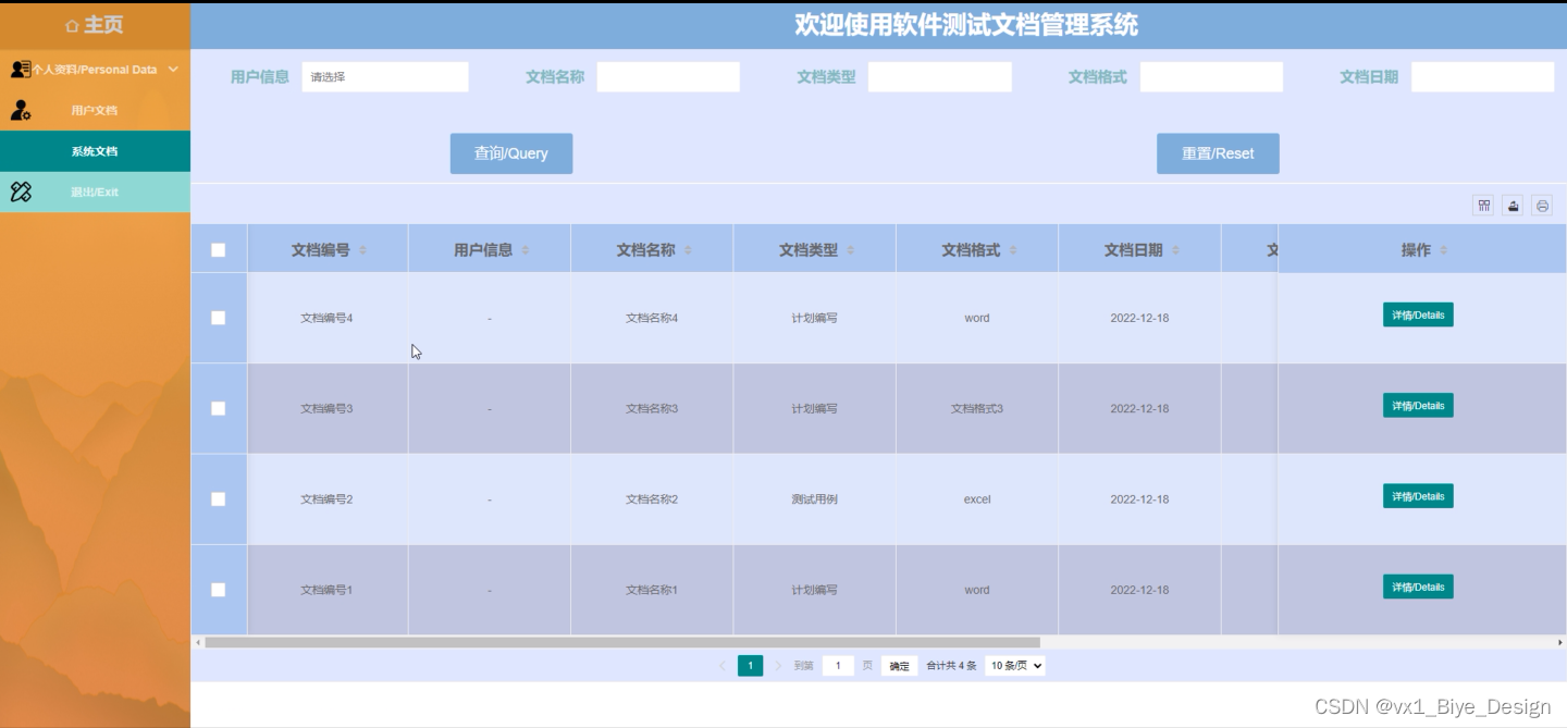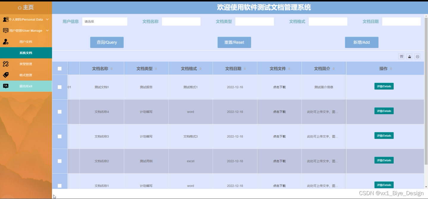 用户通过系统文档页面进行详情查看、修改、下载等操作。程序效果图如下图5-10所示:
