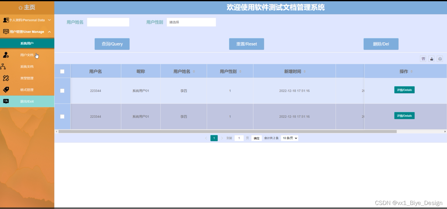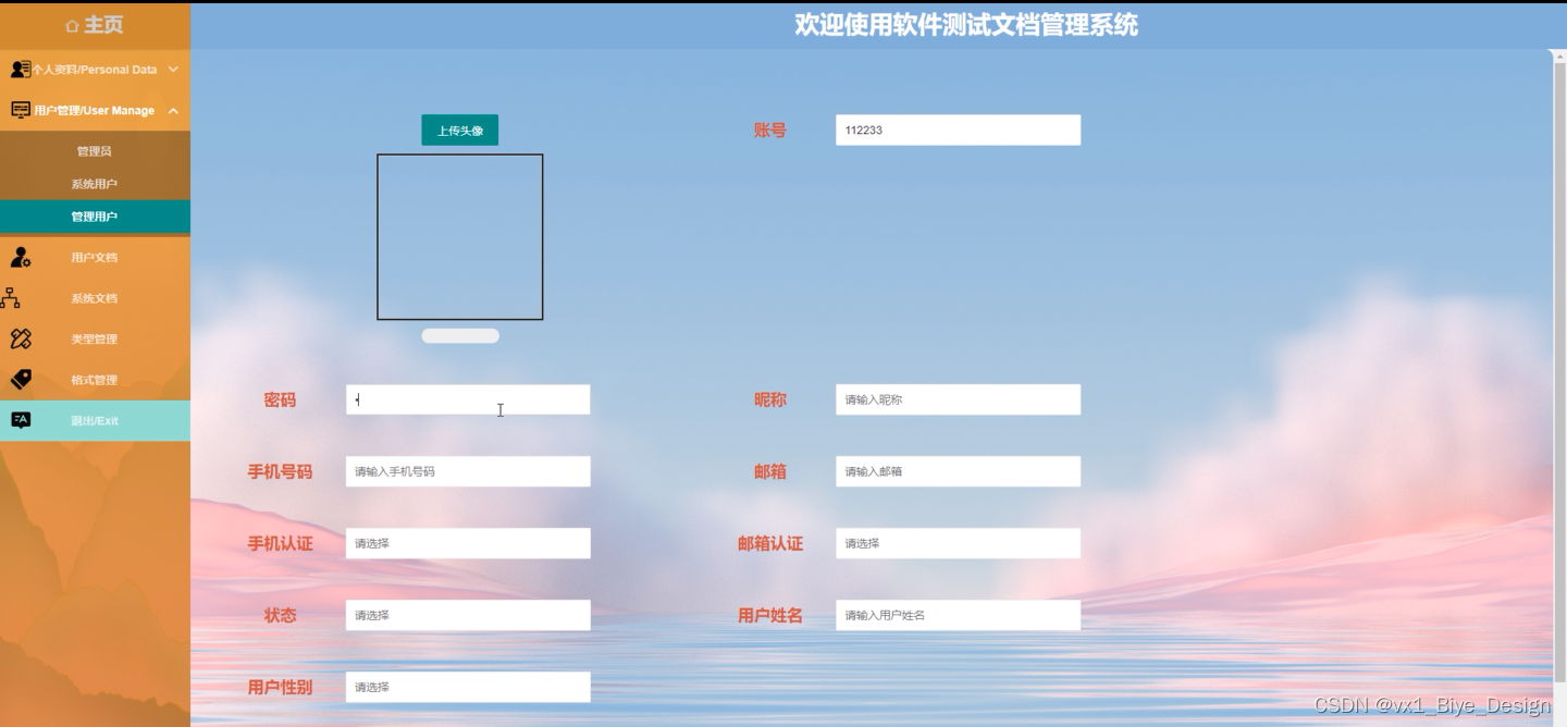 (1)功能要求:后台首页、用户管理(管理用户、系统用户、管理员)、用户文档、系统文档、类型管理、格式管理、个人资料(个人信息、修改密码)等功能模块。