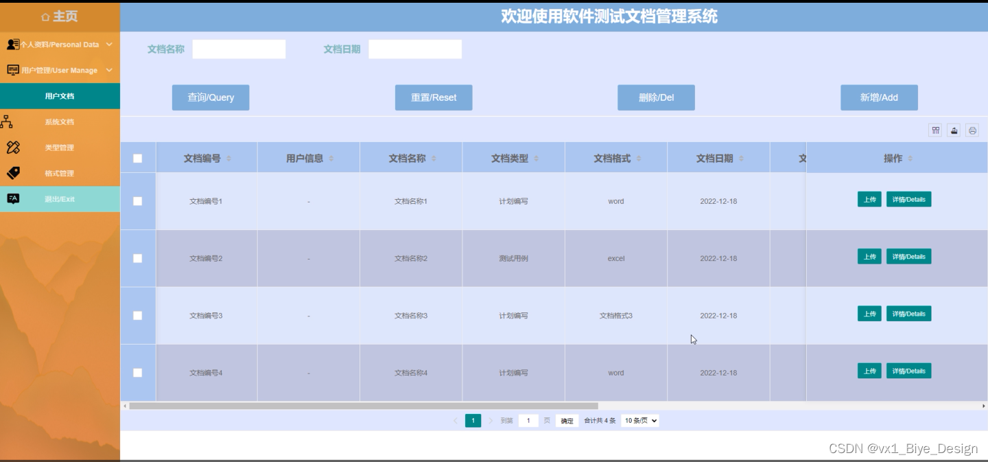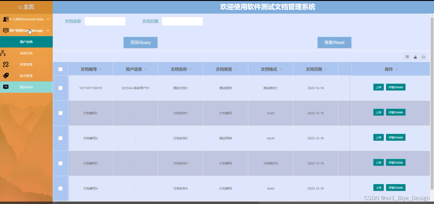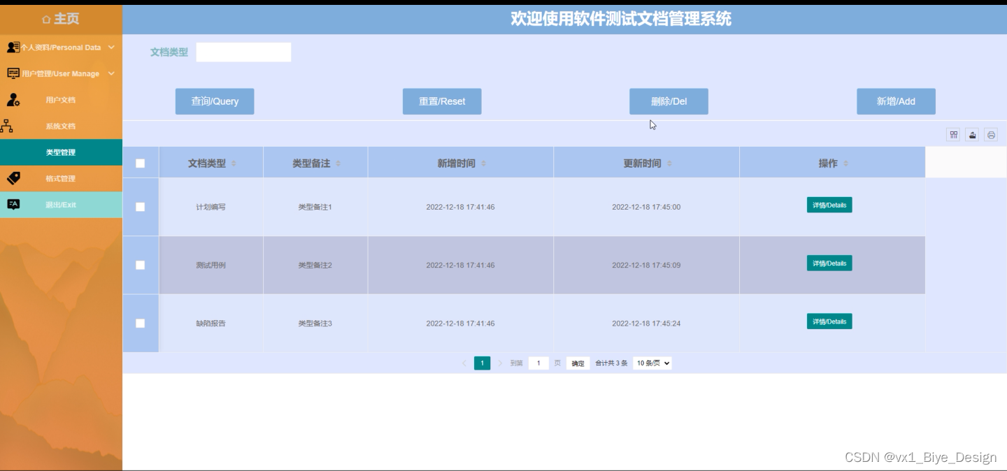 管理员对用户文档管理进行查看详情、删除、修改以及上传等操作。程序效果图如下图5-3所示: