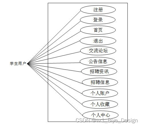 图2.1 高校毕业生招聘管理信息系统中学生用户角色用例图