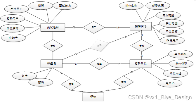 下面是整个高校毕业生招聘管理信息系统中主要的数据库表总E-R实体关系图。