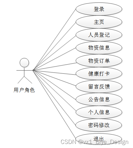 通过2.3功能的分析,得出了本社区人员管理系统的用例图: