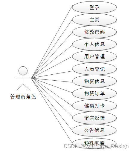 web后台管理上的管理员是维护整个社区人员管理系统中所有数据信息的。管理员角色用例如图2-4所示。