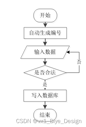 用户成功登入系统后就能够实现增加数据的操作,增加数据的编号是特定的,系统生成,用户不能随意填写,除了编号以外,其他增加信息用户自己填写,填写后的信息经过系统验证,验证合法通过就显示增加数据成功了,相反的话,就没有增加成功,图2-1显示的就是在增加数据时的流程。
