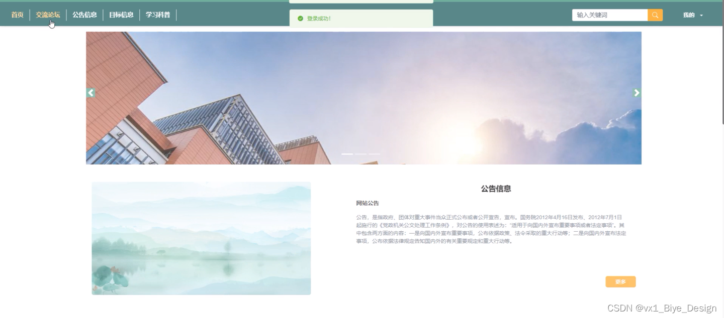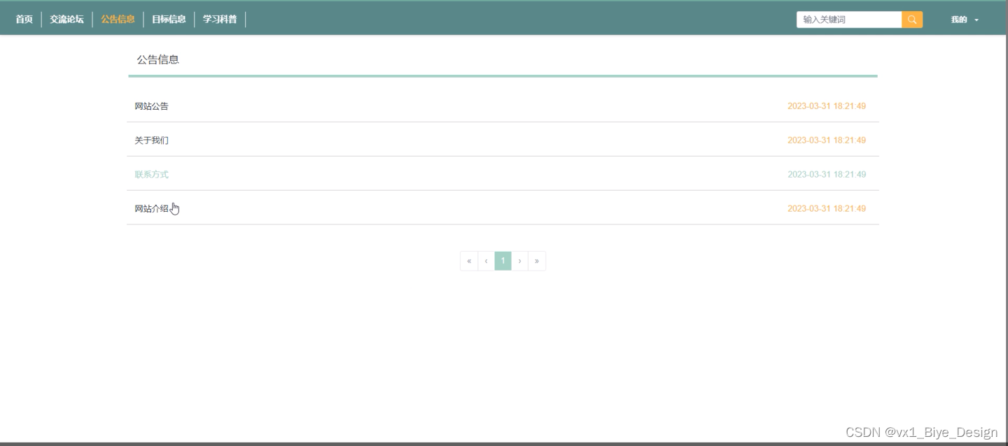 公告信息页面,在此栏可以通过搜索公告标题进行查看看到管理员发布的公告信息,如下所示。