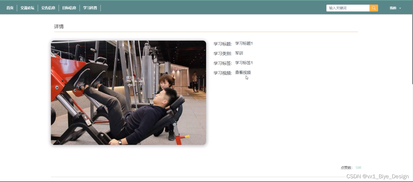本系统主要采用了Java技术,将所有业务模块采用以浏览器交互的模式,选择MySQL作为系统的数据库,开发工具选择My eclipse来进行系统的设计。基本实现了大学生体质测试管理 应有的主要功能模块,本系统有管理员、学生用户。管理员:后台首页、个人资料(个人信息、修改密码)、轮播图、公告信息管理、系统用户(管理员、学生用户)、交流管理(论坛列表、论坛分类列表)模块管理(目标信息、目标记录、学习科普、学习类别)。学生用户;首页、我的(个人信息、我的账户、我的收藏)、交流论坛、公告信息、目标信息、学习科普等功能模块。