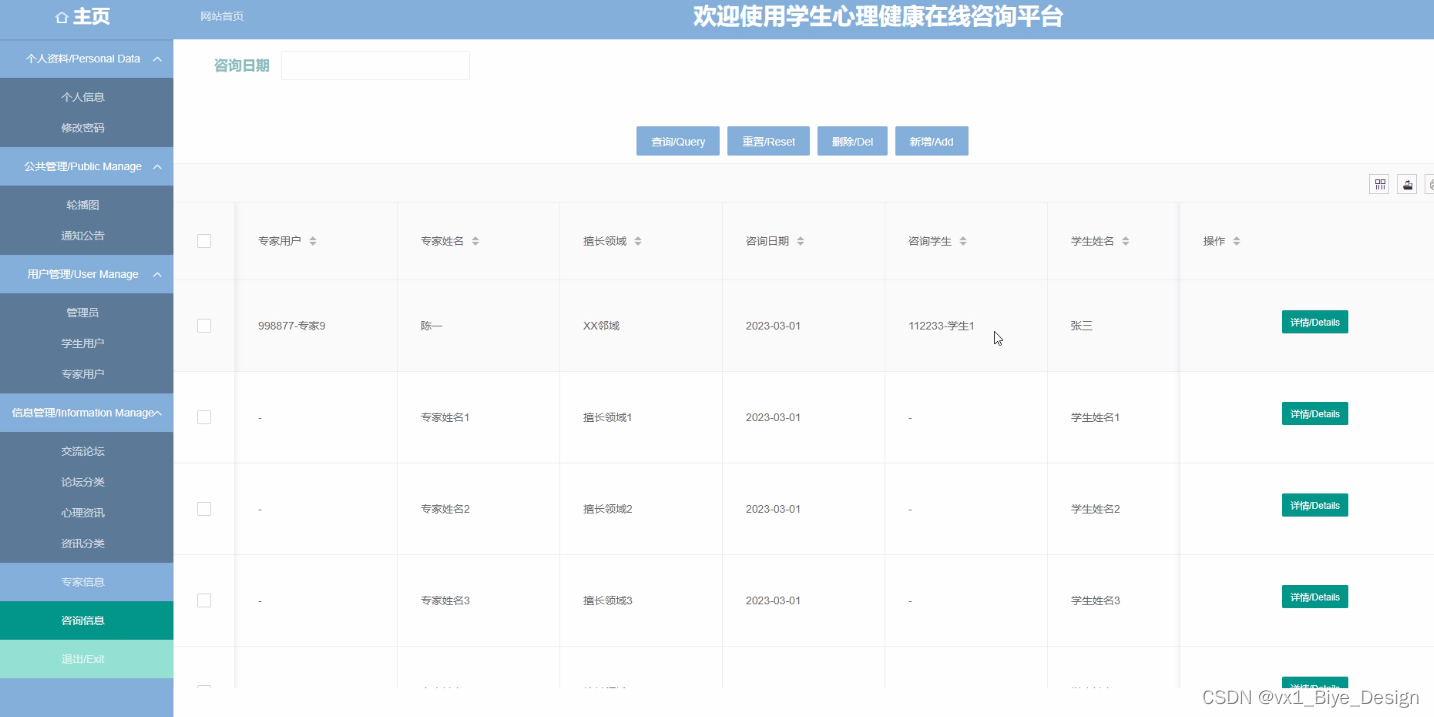 Abstract: Under the influence of the rapid development of society, the education industry continues to develop, greatly increasing the number, diversity, quality and other requirements of online counseling platforms for students' mental health, making the management and operation of online counseling platforms for students' mental health more difficult than in the past decade. Based on this reality, it is very important and valuable to design a fast and convenient online counseling platform for students' mental health. For the traditional online counseling platform for students' mental health, the online counseling platform for students' mental health has many incomparable advantages, first is the rapid update of expert information, second is the management of a large amount of information, and finally is highly safe, and easy to use, which makes the management and operation of the online counseling platform for students' mental health very convenient. In the 21st century, with the rapid development of science and technology and economy, the people's spiritual needs for non-material aspects are becoming more and more diversified. This system is proposed to achieve these goals.