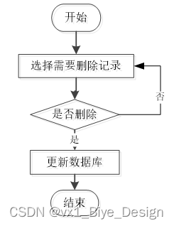 用户可选择要删除的信息进行信息删除操作,在删除信息时系统提示是否确定删除信息,是则删除信息成功,系统数据库将信息进行删除。删除信息流程图如图2-4所示。