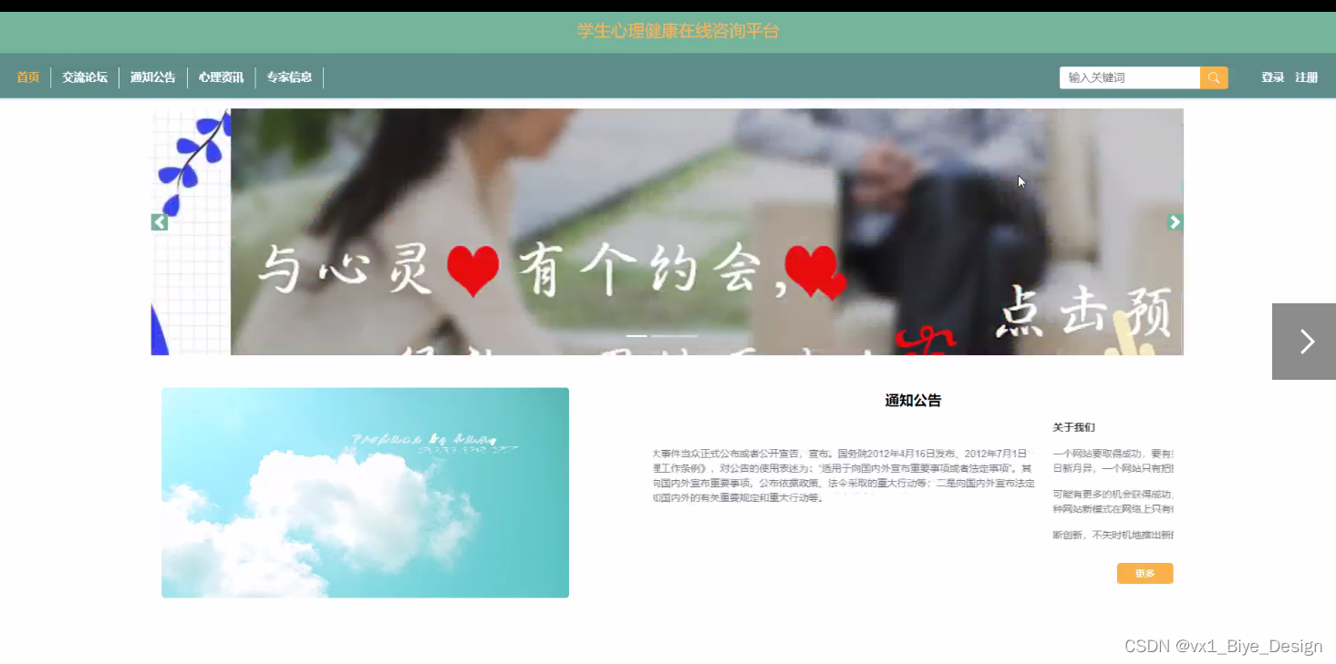 关键词:学生心理健康在线咨询平台,互联网模式,SSM,数据库