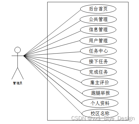 校园跑腿系统中管理员角色用例图如图2.3所示: