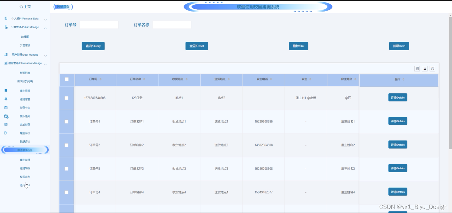 关键词:校园跑腿系统;JSP;SSM;MYSQ