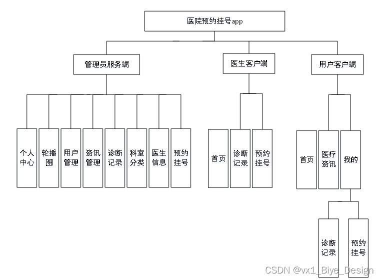 系统架构图属于系统设计阶段,系统架构图只是这个阶段一个产物,系统的总体架构决定了整个系统的模式,是系统的基础。基于医院预约挂号的整体结构设计如图4-2所示。