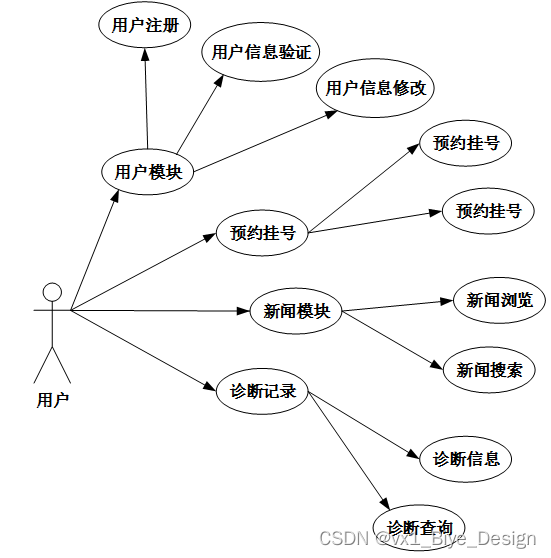 1.普通用户主要使用系统的医院预约挂号,下图所示为普通用户的用例图。