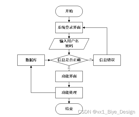 用户打开客户端并进入系统后,会先显示登录界面,输入正确的用户名和密码,系统自动检测信息,若信息无误,则用户会进入系统功能界面,进行操作,否则会提示错误无法登录,操作流程如图3-3所示。