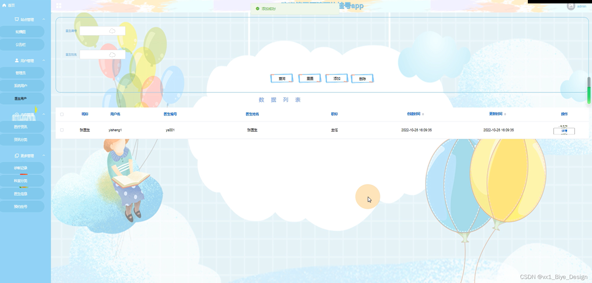 医生信息列表详情页面可编辑所属科室、医生姓名、医生职称等信息,如图5.11所示。