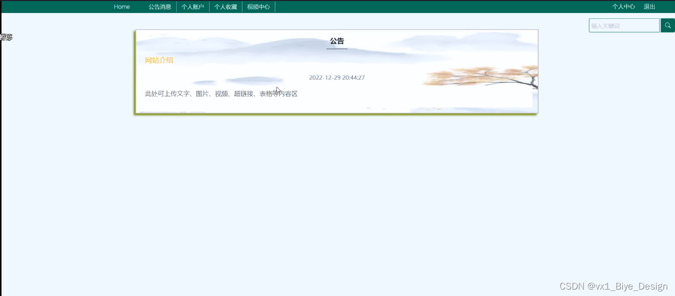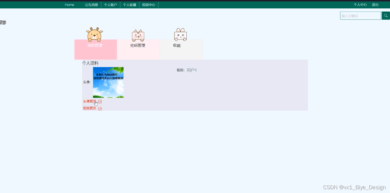 (7)个人中心:在首页导航栏上我们会看到“个人中心”这一菜单,就会进入到对应的后台进行信息的管理了;