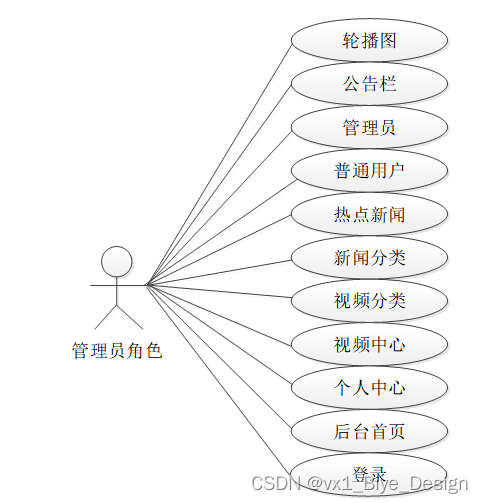 web后台管理上的管理员是维护整个新闻信息检索系统中所有数据信息的。管理员角色用例如图2-4所示。