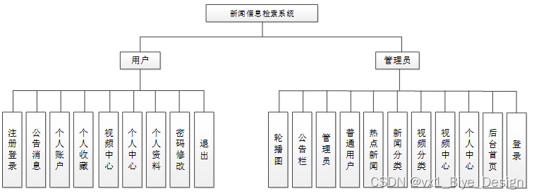 按照新闻信息检索系统的角色,我划分为了普通用户管理模块和管理员管理模块这两大部分。