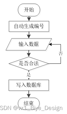 用户成功登入系统后就能够实现增加数据的操作,增加数据的编号是特定的,系统生成,用户不能随意填写,除了编号以外,其他增加信息用户自己填写,填写后的信息经过系统验证,验证合法通过就显示增加数据成功了,相反的话,就没有增加成功,图2-1显示的就是在增加数据时的流程。